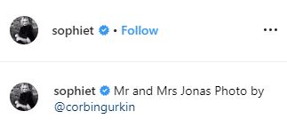 New pictures have emerged on Instagram showing the bride in Louis Vuitton White full sleeved v neck lace dress and Groom in Black Tuxedo. The pictures were captained – Mr. and Mrs. Jonas. The pictures are trending all over the internet with 3 Million likes. Fans are swooning over pictures and congratulating them. Pre-wedding pictures have been released as well in which Priyanka and Sophie can be seen wearing white dresses. Both the ladies are very close and consider each other sisters and call themselves J-Sisters. Sophie was a part of Priyanka Chopra Bachelorette in France. Post wedding pictures show a Red Themed Party in which you can see Sophie wearing a Red Dress.